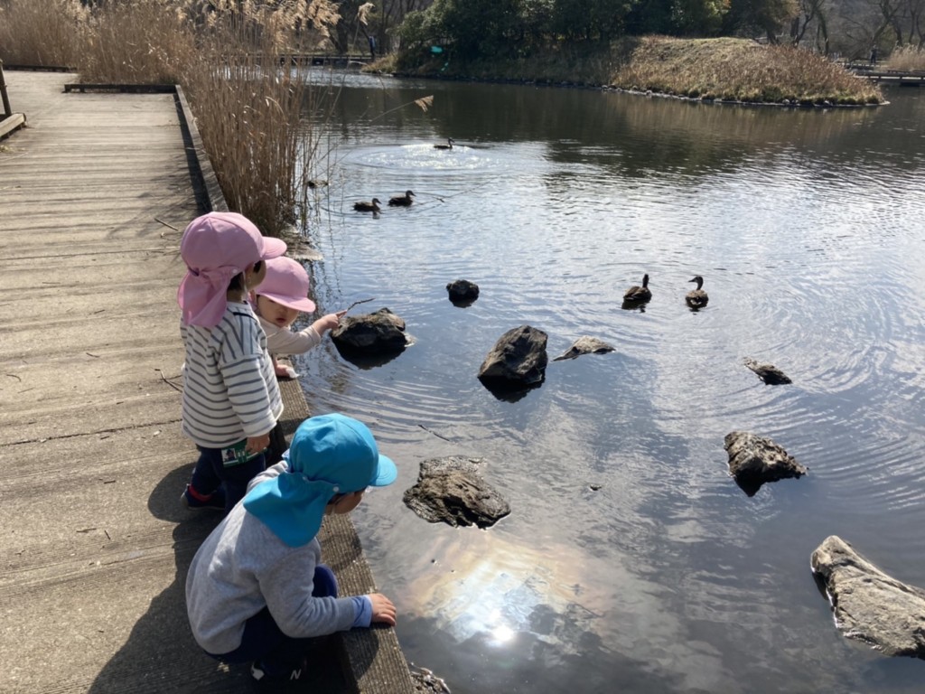 ビオトープの観察にも力が入るこの頃。一生懸命カモを呼びこんだり水の流れを観察して何かいないかな?と探しています。