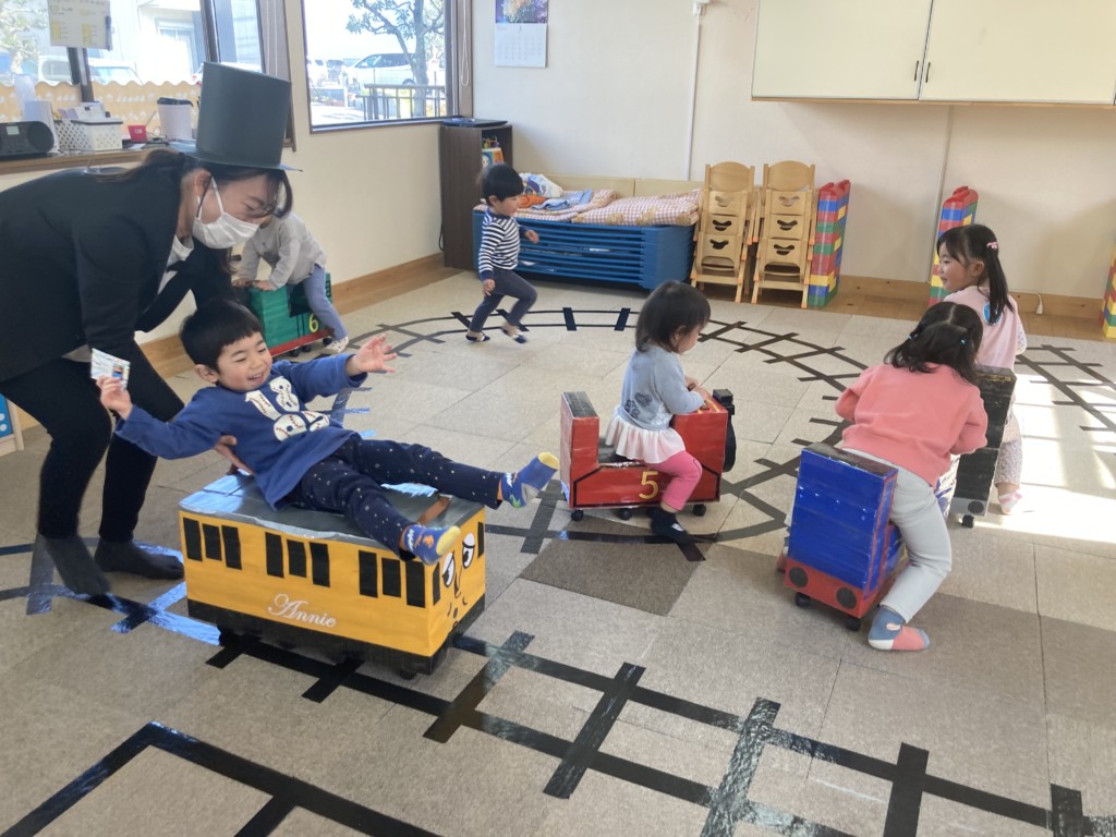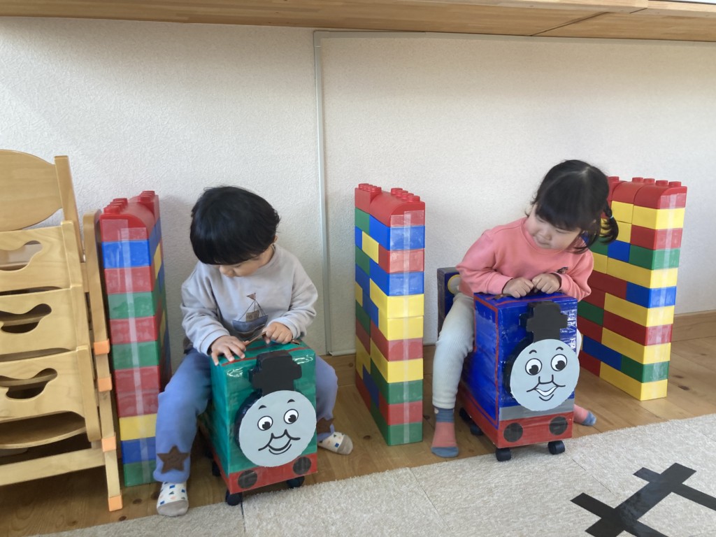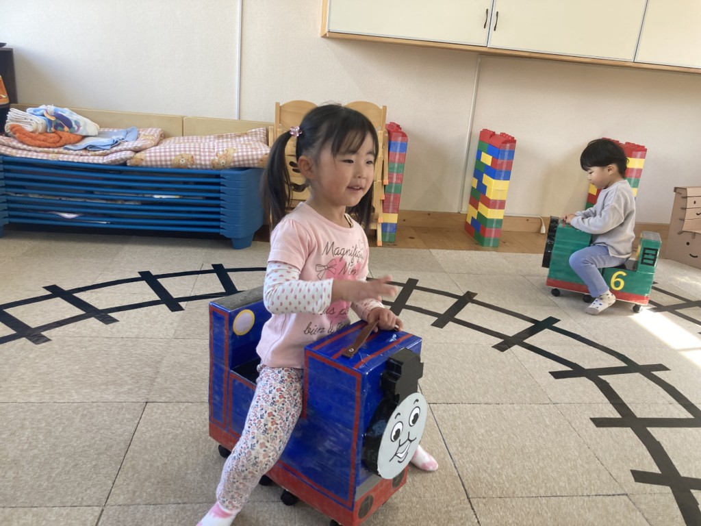 今日はゴーカートならぬゴートーマス&ジェットコースターを楽しみました♪急遽決まったゴートーマスでしたが、昨日のうちにふみきりや信号機が付き線路も拡張工事が行われ朝にはすっかりコースが出来上がっていました。