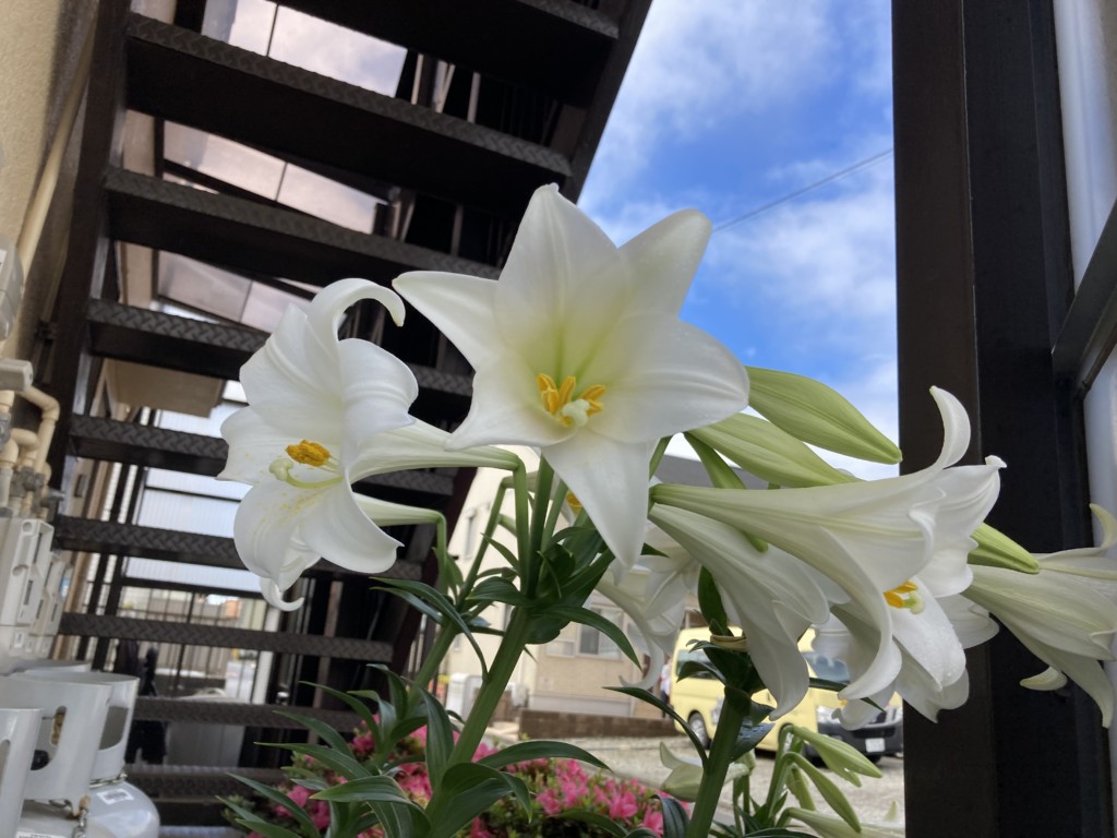 また、卒園児の保護者の方からいただいたユリの球根も綺麗な花を咲かせています☆毎年ユリの花が咲く度に「元気にしてるかな?」「○○が好きだったよね」と保育園を卒園していった子どもたちに思いを馳せる先生たちです♡卒園してもいつでも遊びにおいでね~♡