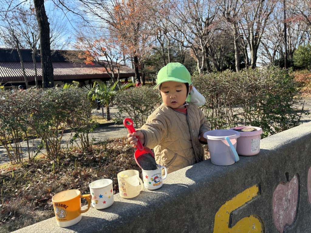 砂場ではコップやバケツにお砂を入れてジュース屋さんやレストランごっこをしたり、ロープジャングルジムを登るザイルクライミングに挑戦したりとそれぞれが好きな遊びを自由に選んで楽しんでいました。