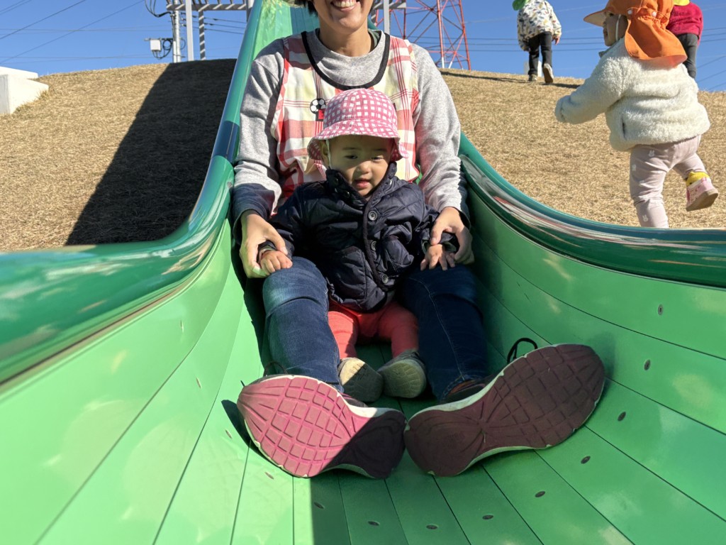 カインズ公園の滑り台は高台にあり見晴らしもよくてみんな大好き!