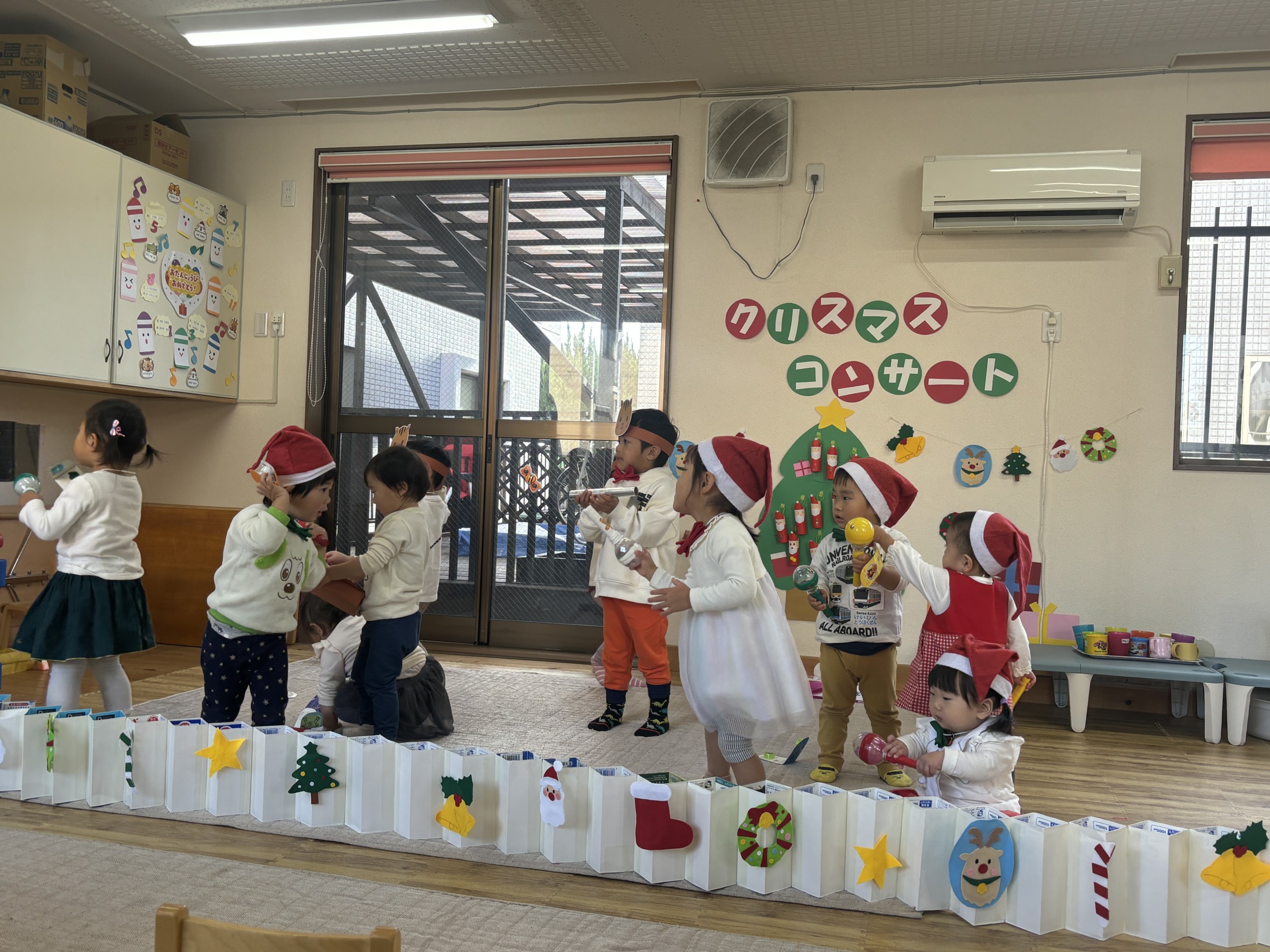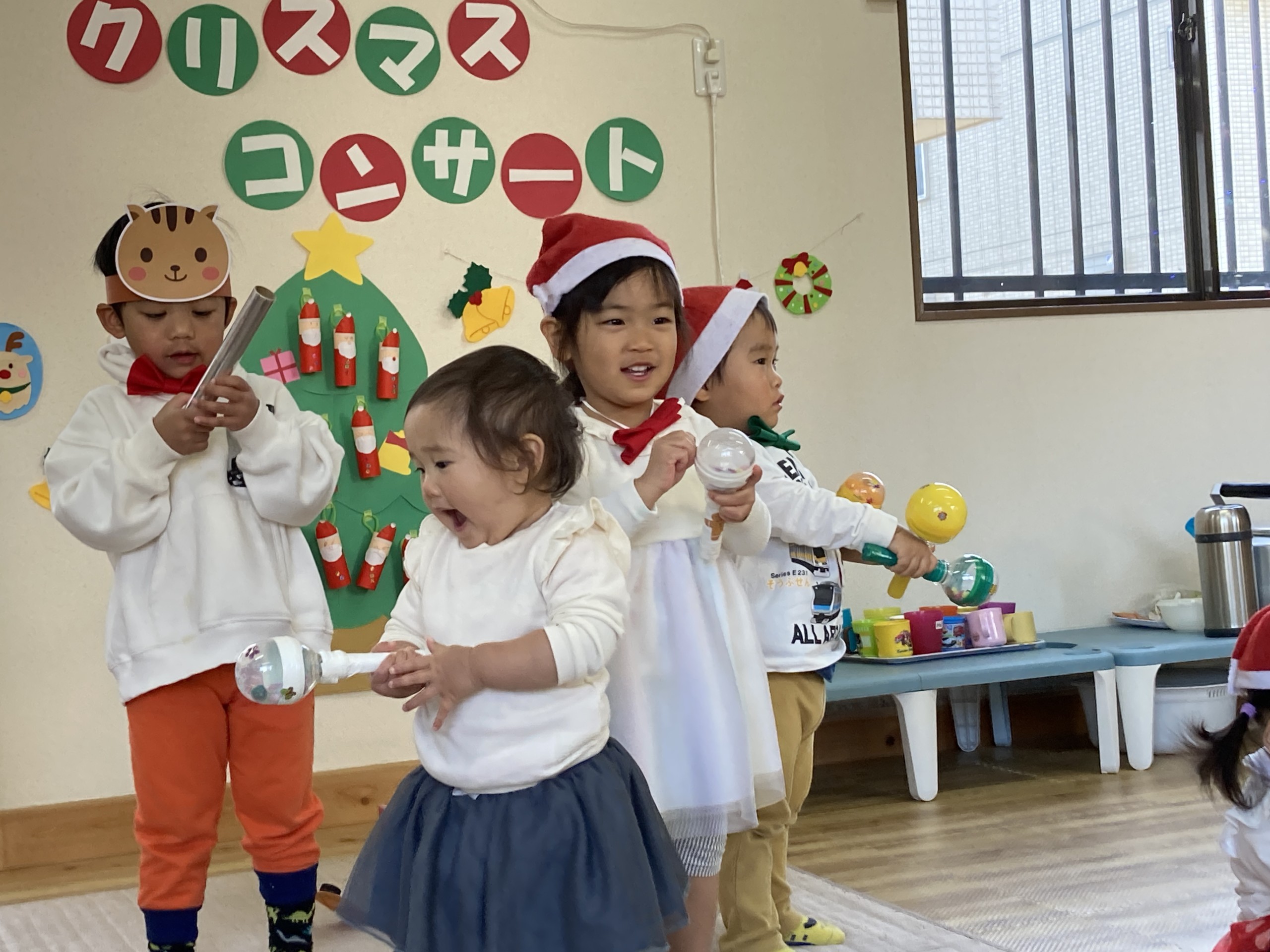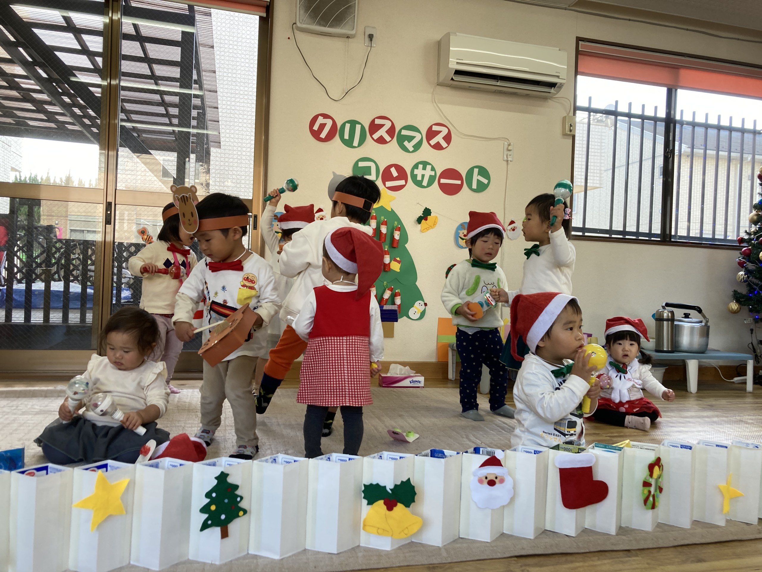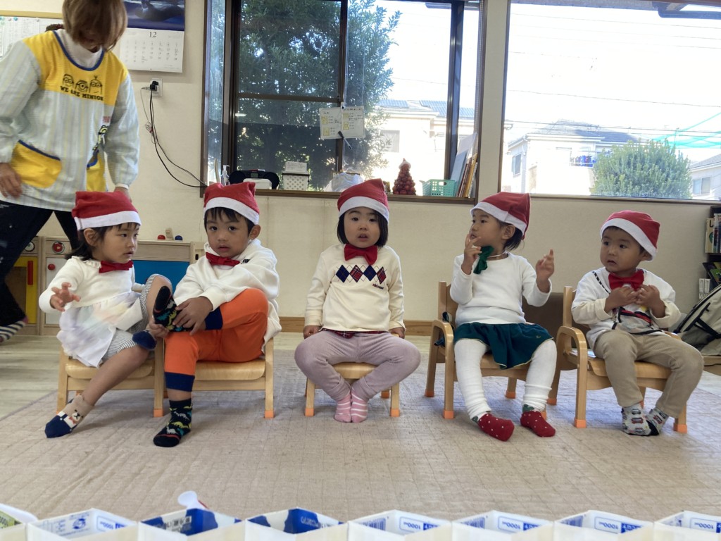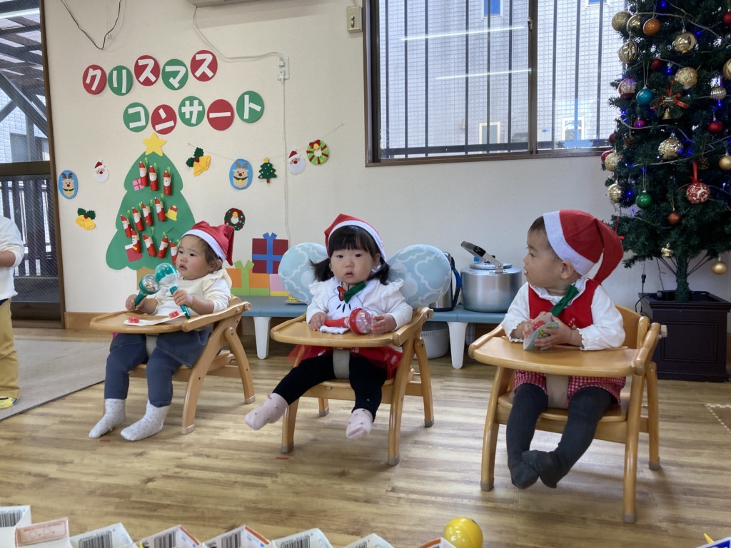 今年のクリスマスは子どもたちが主役となってコンサートを開催!日頃からきらきら星や手遊び歌などを口ずさむことが多く、音楽がかかるとノリノリで身体を動かしていた子どもたち。その姿からヒントを得て子どもたちが楽しく音楽に触れながら自由に表現ができるクリスマスコンサートを開催しました♪