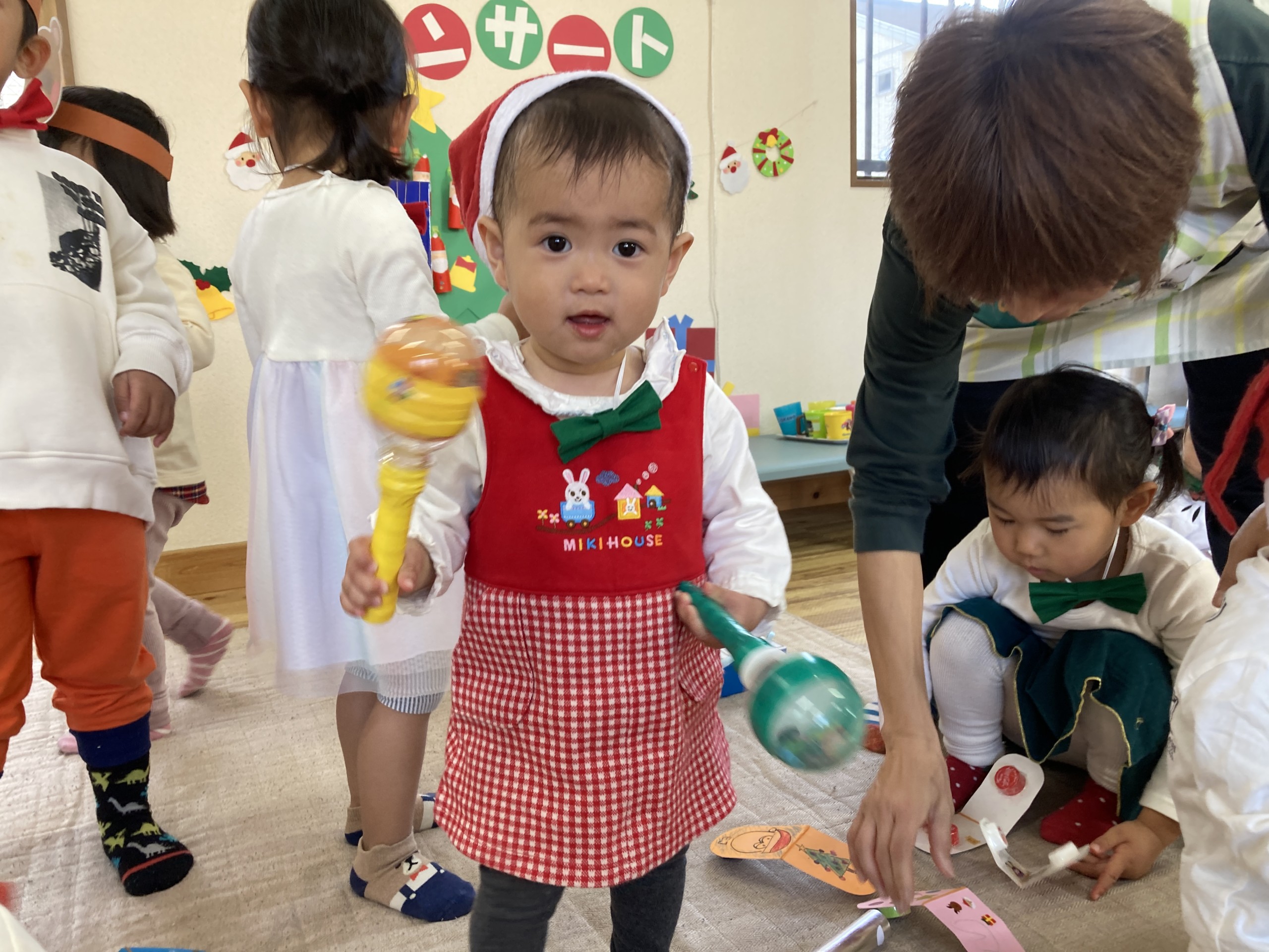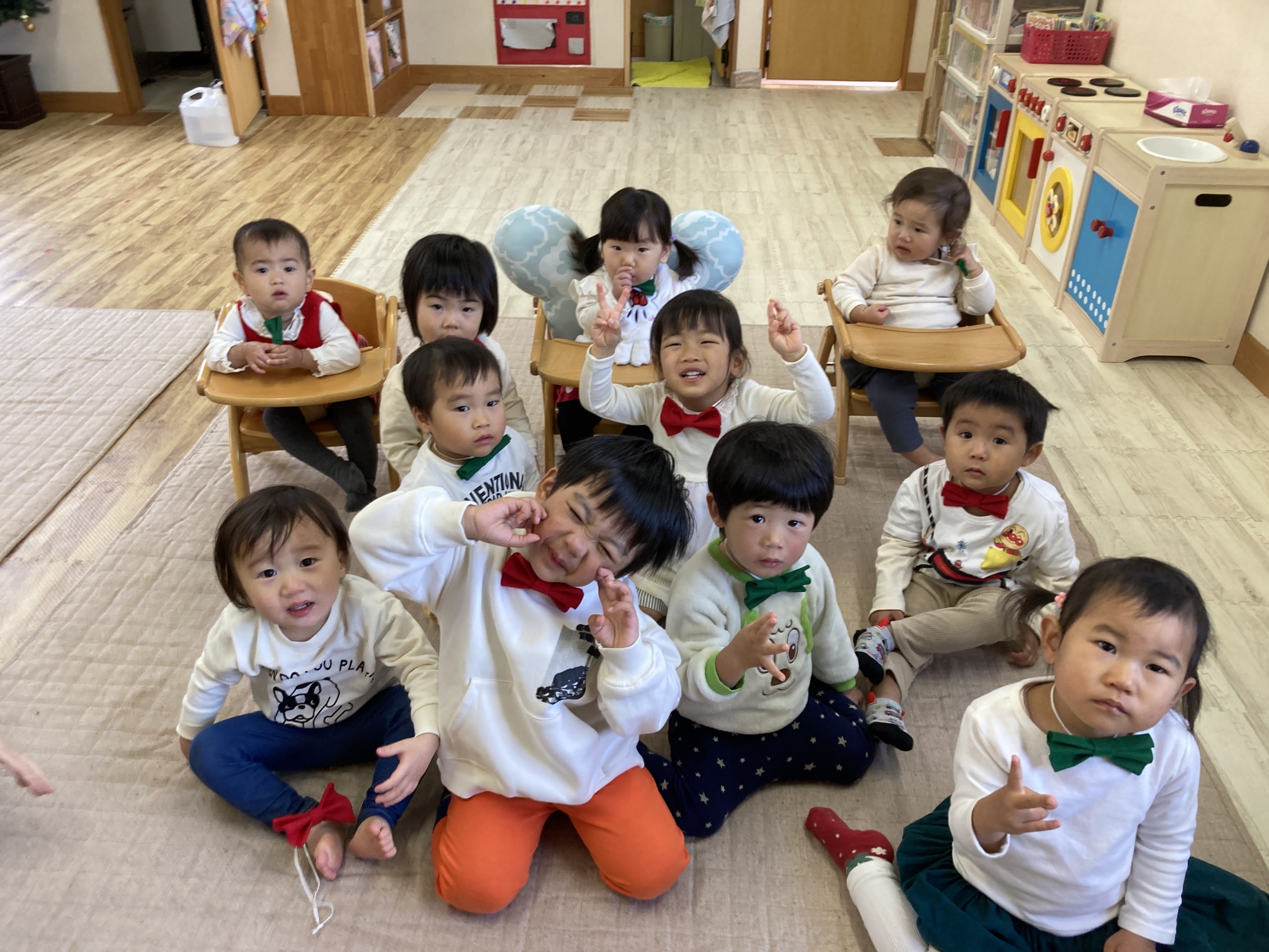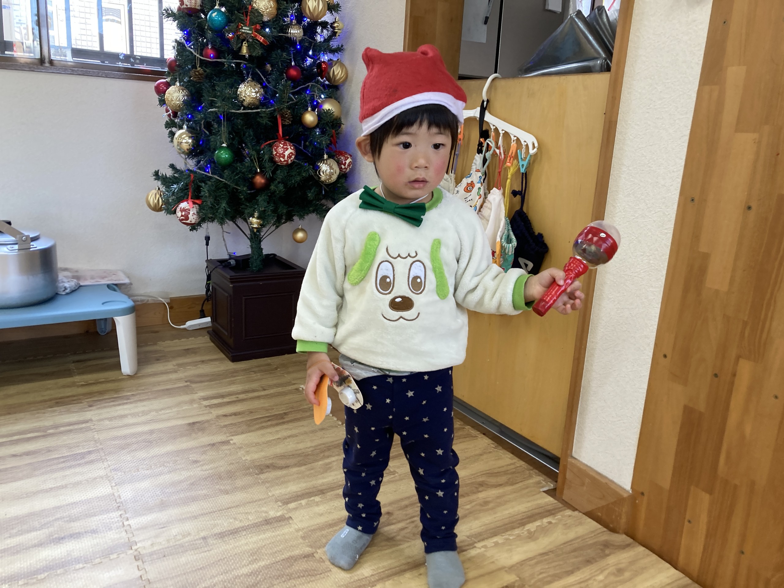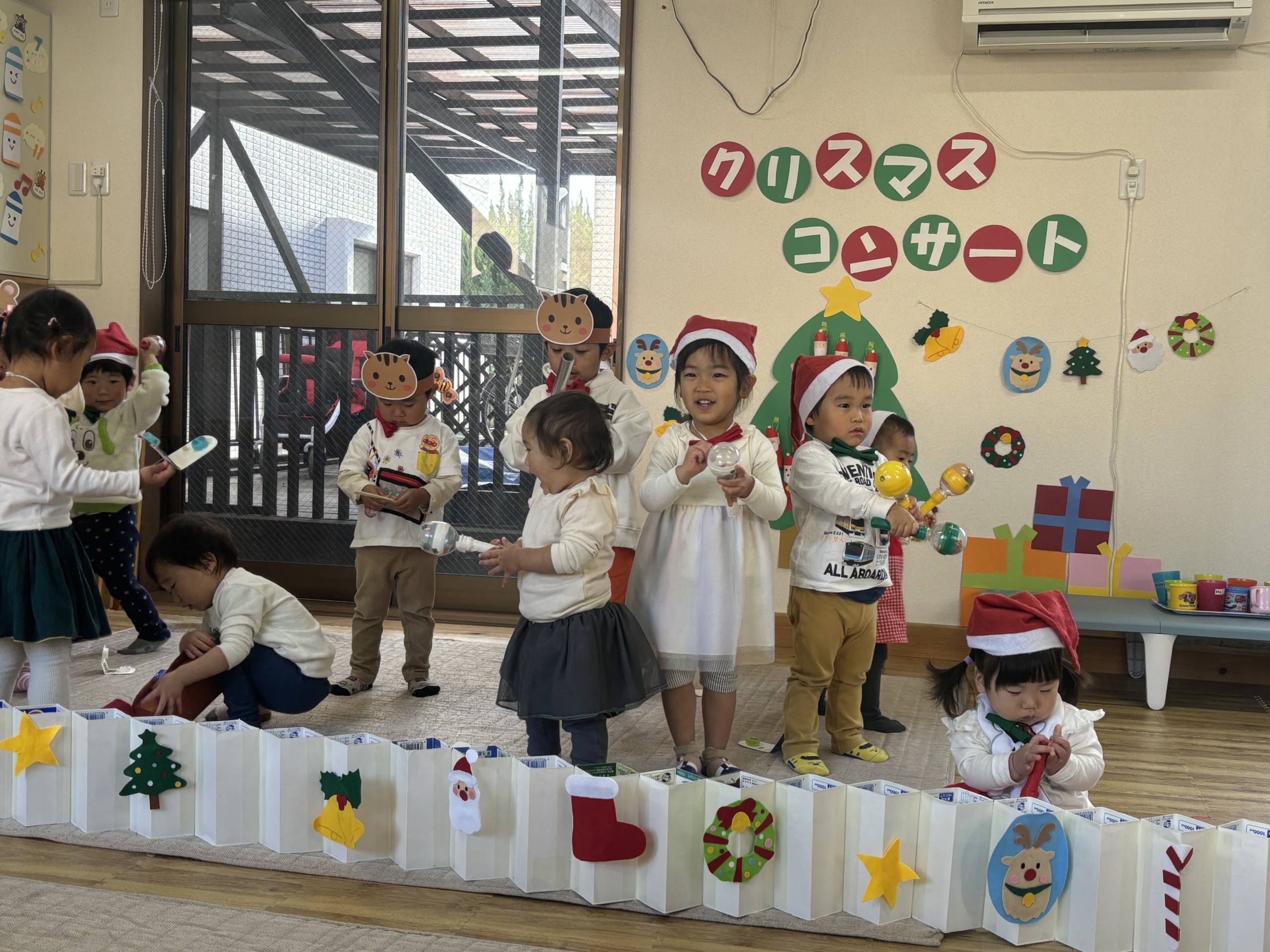 今年のクリスマスは子どもたちが主役となってコンサートを開催!日頃からきらきら星や手遊び歌などを口ずさむことが多く、音楽がかかるとノリノリで身体を動かしていた子どもたち。その姿からヒントを得て子どもたちが楽しく音楽に触れながら自由に表現ができるクリスマスコンサートを開催しました♪