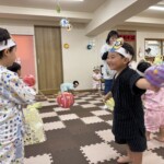 おうちから甚平を着て登園。いつもと違う装いや雰囲気に大盛り上がりでした。
